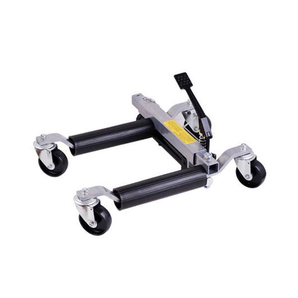 Our dollies offer a low center of gravity to make it safe and easy to move any vehicle safely in the shop or home. Rigid steel frame great stability. It has a mechanical foot pedal that hydraulically lifts the tire and lifts the car without touching the frame. Great for showrooms, mechanic’s shops, body shops. Move cars into position for towing. Here are the benefits of our dollies: Rolls easily in any direction Rigid steel frame Easy foot pedal for lifting Bi-directional double pawl ratchet lifts tires between rollers Roller touch tires only Heavy duty casters Handles up to 12" tires 360 degree rolling platform when using all four Free mounting stand 1500 lb capacity each